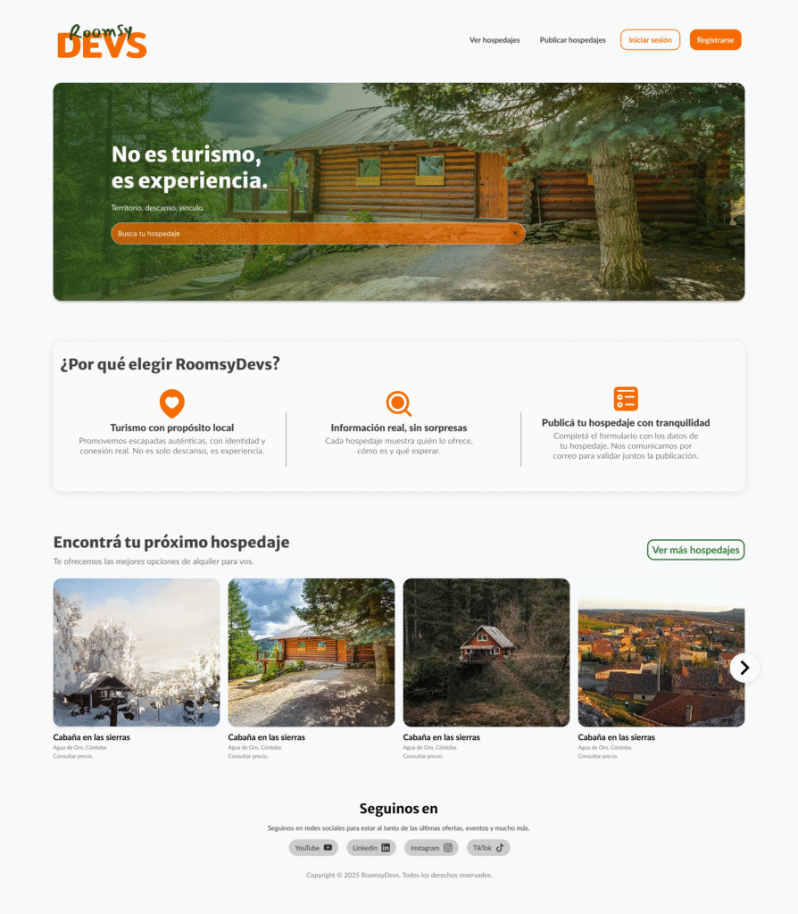 Esta entrada surge mientras trabajamos en el diseño de la web principal de RoomsyDevs, un proyecto que reúne distintas vistas funcionales como formularios de registro, galerías de hospedajes y secciones de descripción. A lo largo del proceso, fuimos tomando decisiones que no siempre son visibles en el resultado final, pero que sostienen la lógica y la claridad de cada pantalla.